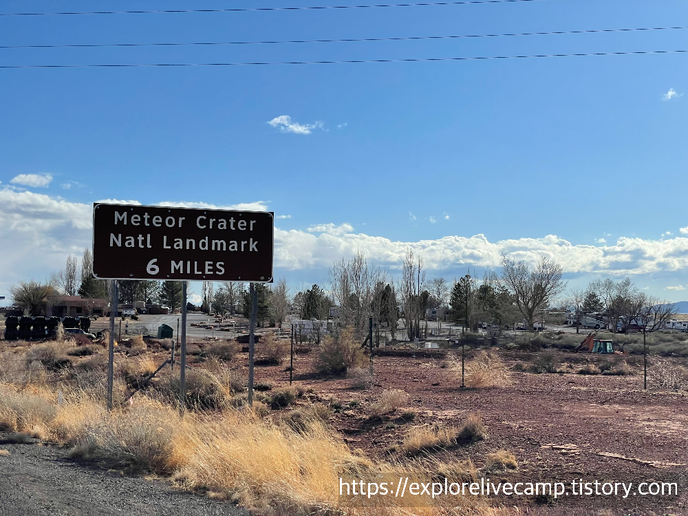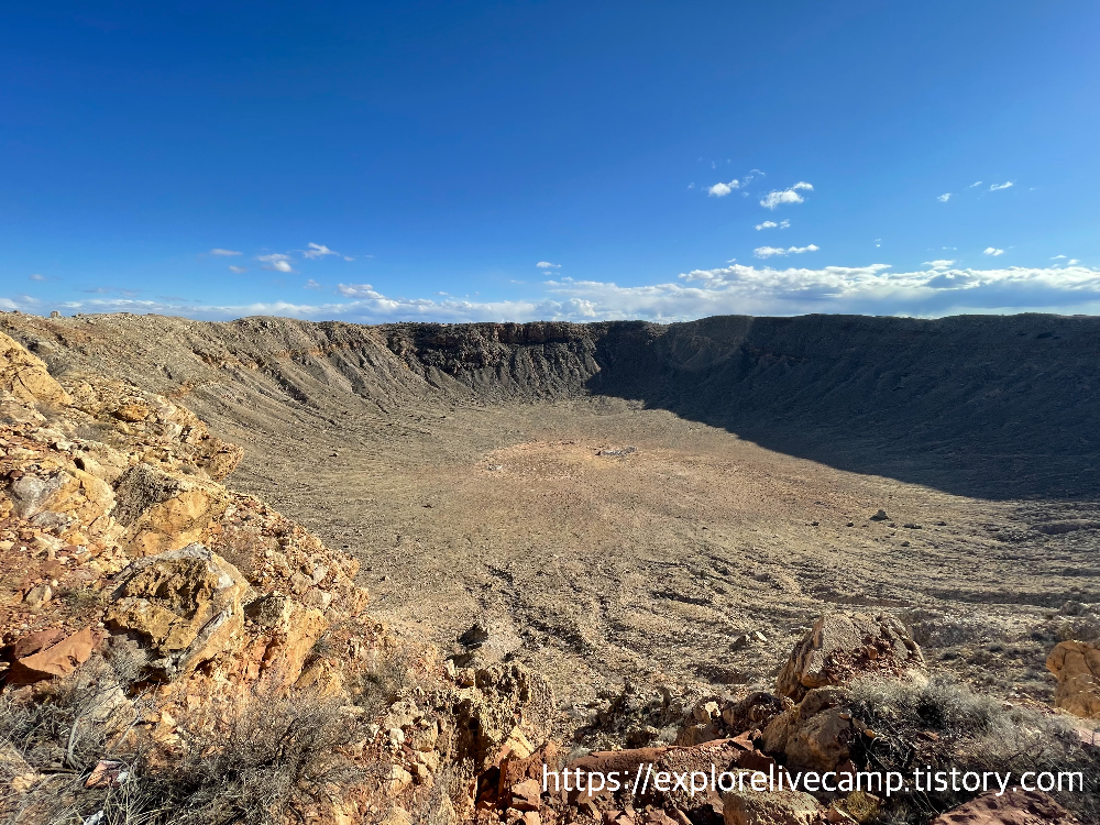 Meteor Crater는 이번 여행 중 제가 가장 가보고 싶다고 손꼽은 곳이었어요. 약 5만 년 전 지금 약 50m의 거대한 철 운석이 시속 4만 km로 지구와 충돌해 생긴 거대한 분화구라니 말만 들어도 막 궁금해지지 않나요? 전 완전 가슴이 콩닥콩닥, 사막 같은 황무지를 가로지으며 가다 보면 5 miles to impact!라는 식으로 표식이 있는데 정말 도착하는 순간 흥분도 최고치를 찍고 도파민 만땅인 상태였다니까요! :) 지금도 그 형상이 너무나 또렷하게 남아 있어서 마치 외계 행성에 온 것 같은 착각이 들 정도였고, 가로 1.2km, 깊이 약 170m의 거대 분화구를 실제로 마주했을 때의 압도감이 대단했습니다.