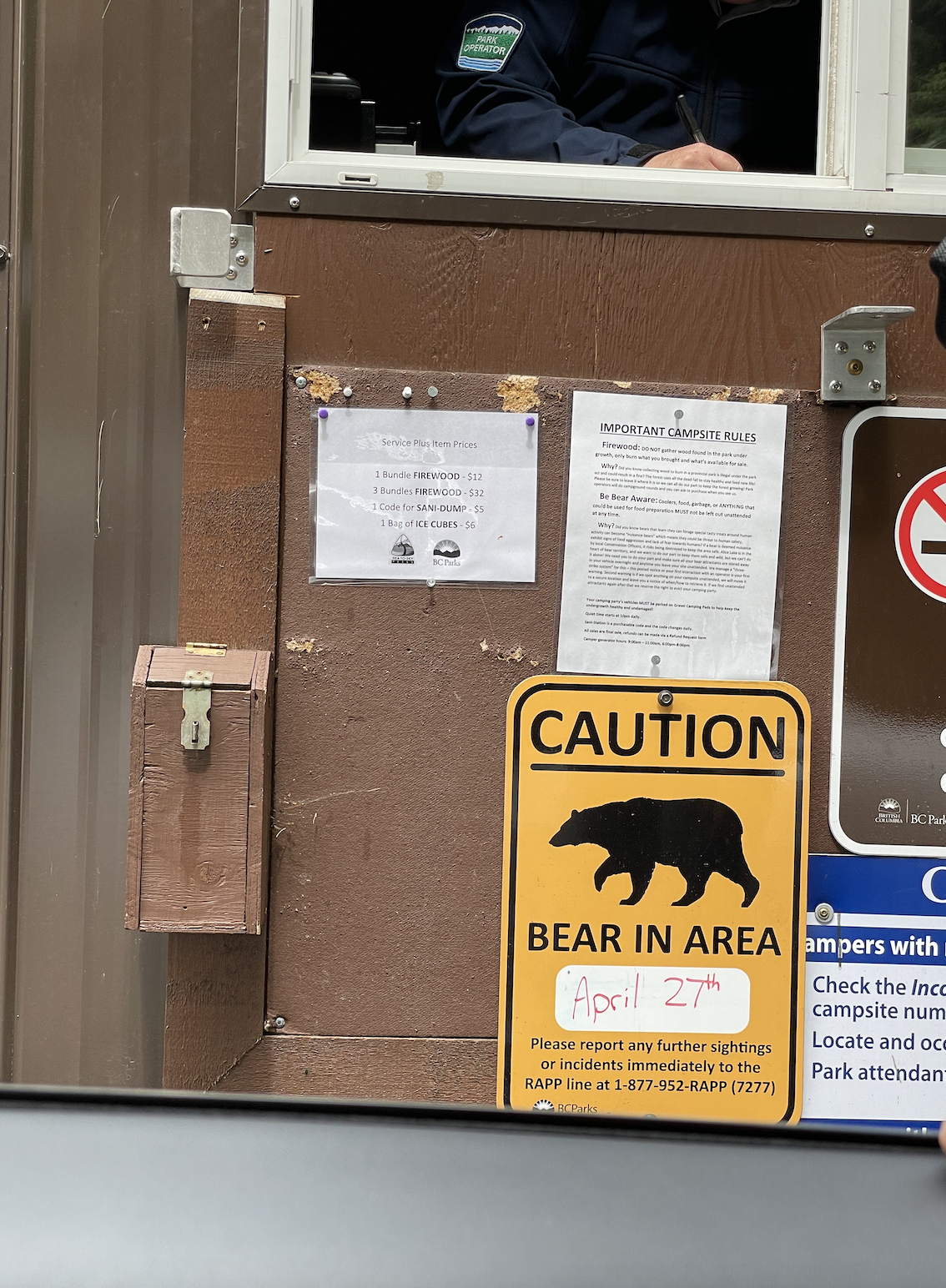 - 야생동물 조심: 한국 캠핑장에서 캠핑하는 경우 밤에 찾아오는 고양이나 개가 대부분인 것 같았어요. 그래서 음식물을 텐트 밖에서 보관하라고 추천하더라고요. 하지만 캐나다라면 정말 조심하셔야 합니다. 라쿤이나 코요테는 종종 목격되고, 쿠거나 곰이 캠핑장에 먹이 구하러 나오는 경우도 있거든요. 음식물은 반드시 차 안 또는 캠프그라운드 내 푸드라커에 보관해 텐트 안에서 음식 냄새가 나지 않게 하는 것이 중요합니다. 취침 전 반드시 쓰레기를 버리고 오셔야 잠자는 동안 야생동물의 킁킁 냄새 맡는 소리를 안 들으실 수 있을 거예요. (꽤나 무섭거든요.. 사실 텐트 안에 음식이 없더라도 호기심 가득한 야생동물의 냄새 맡는 소리는 들어보실 수도 있어요..)